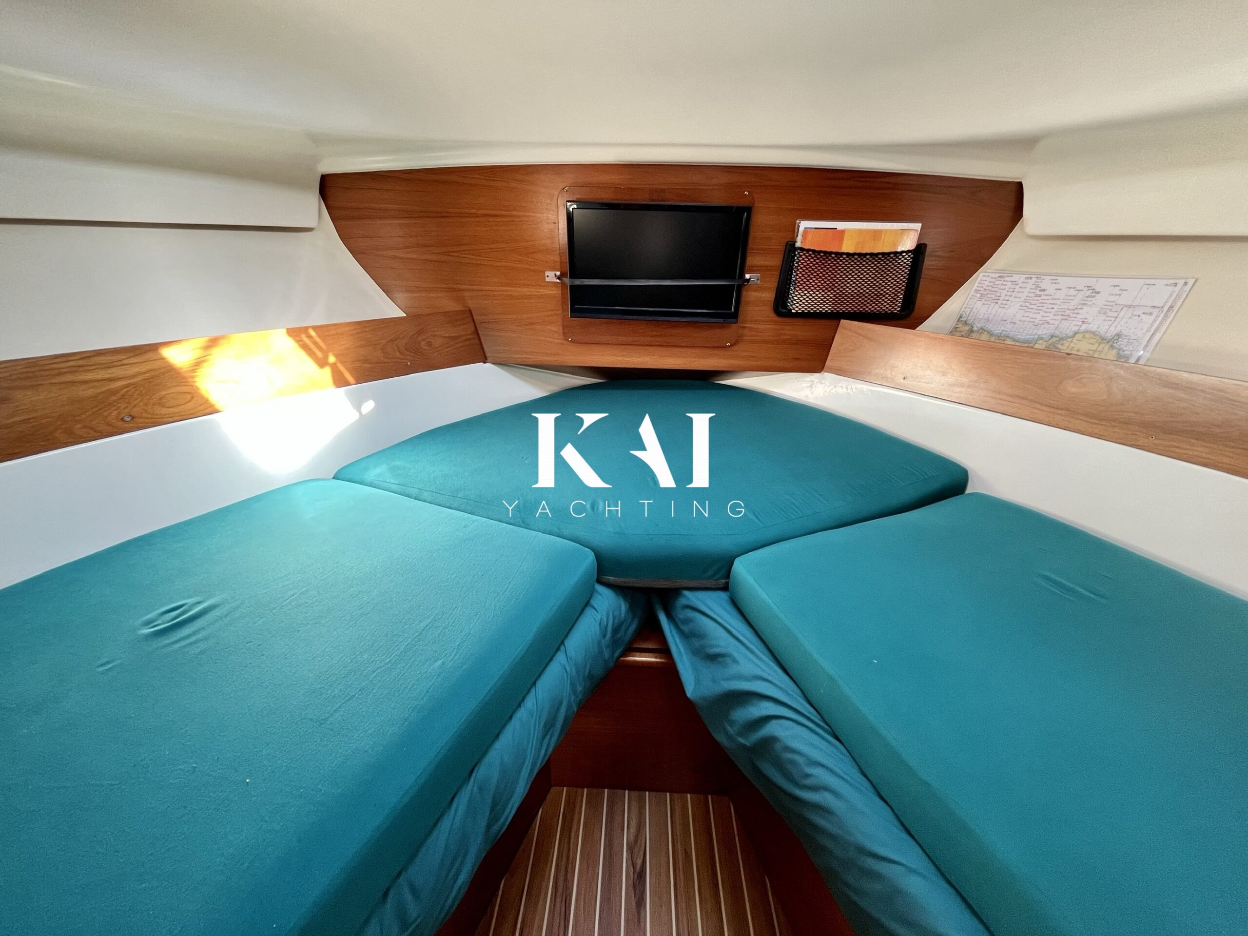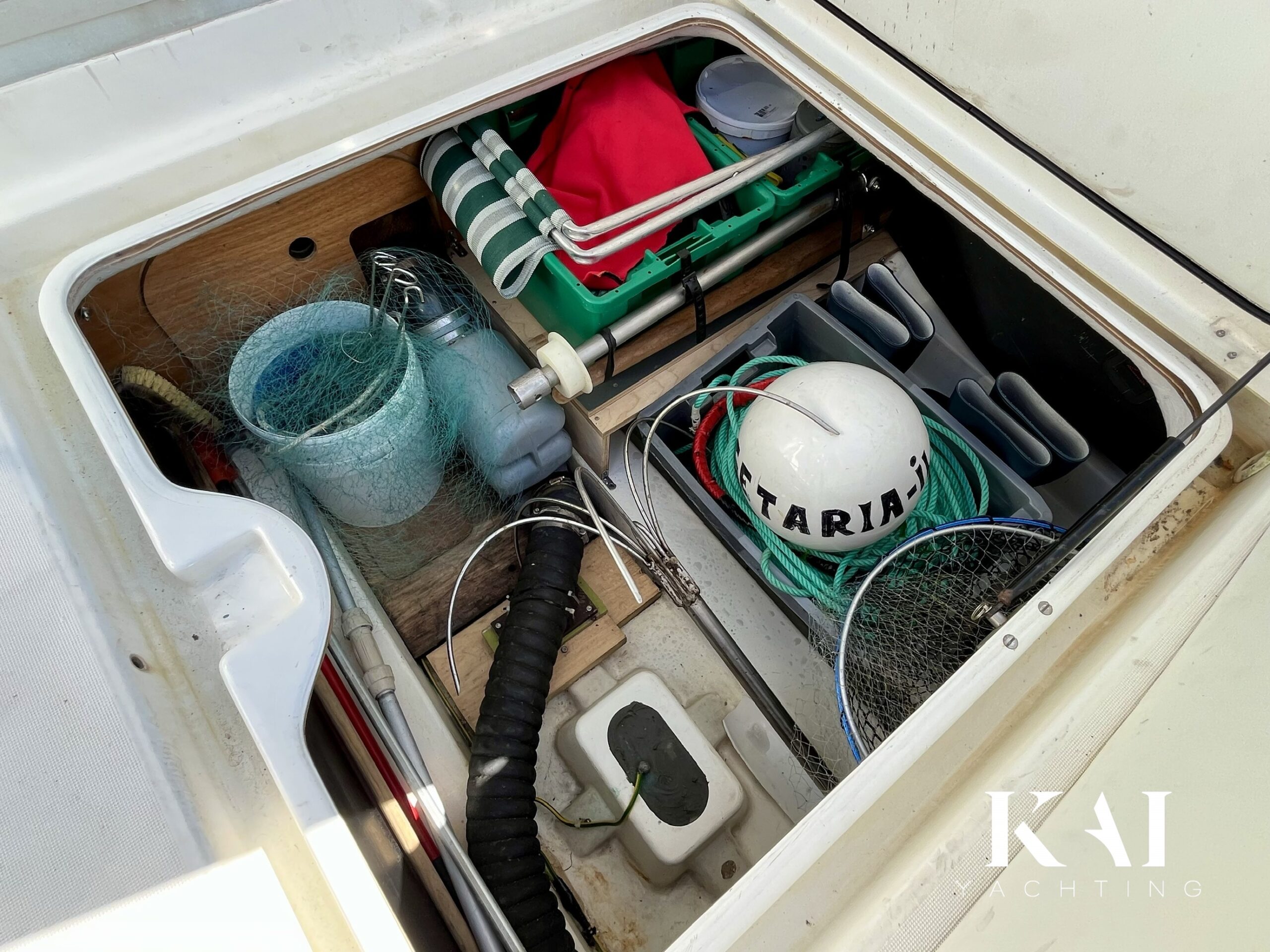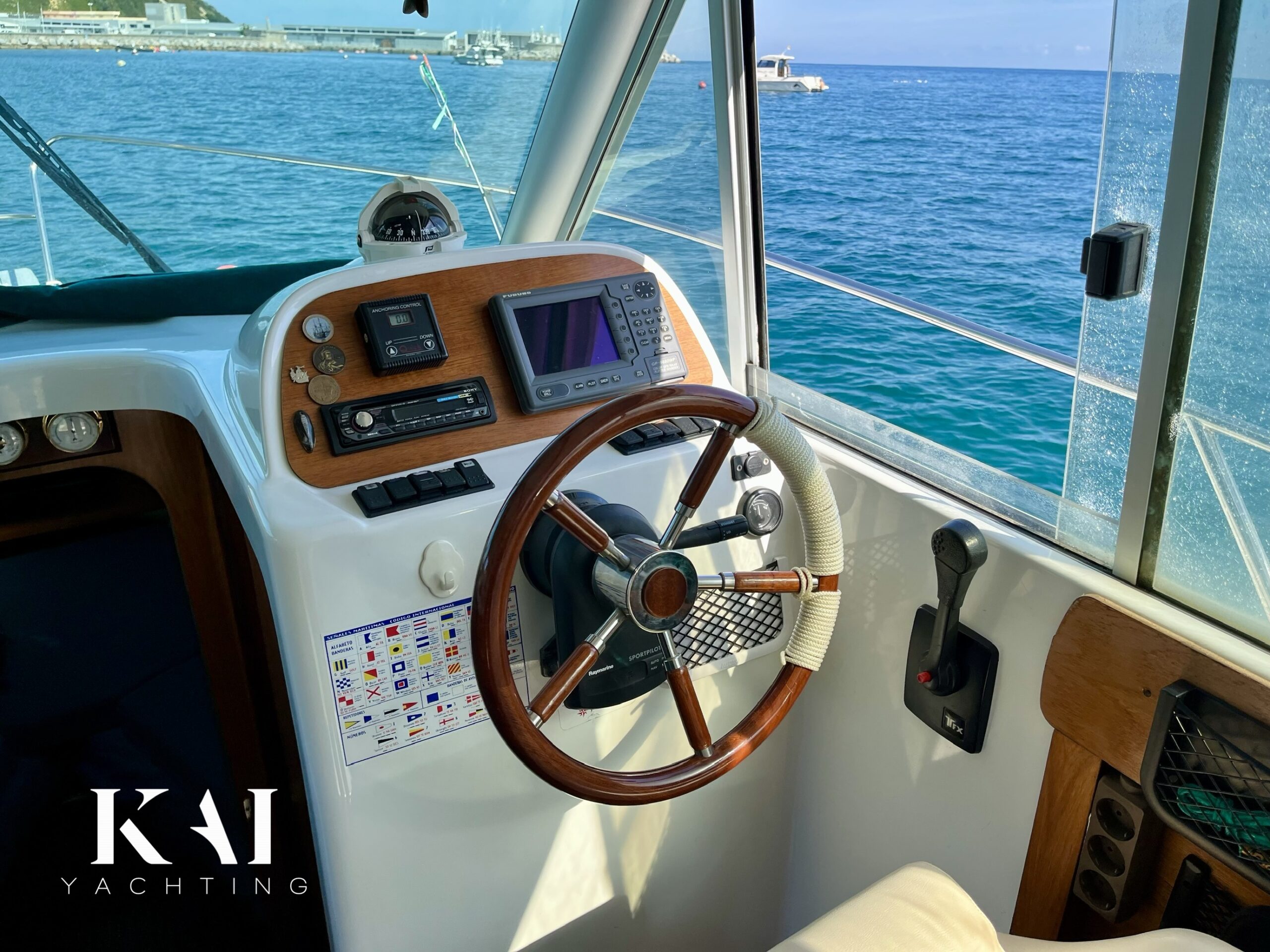 Equipamiento: · Piloto automático · Molinete eléctrico · Equipo de fondeo completo · VHF · Sonda · Ducha de bañera · Antifouling hecho + ánodos 2025 · Equipo completo de seguridad para 12 mn en regla · Cocina de gas con nevera · Velocidad max.: 19 Kn +/-.